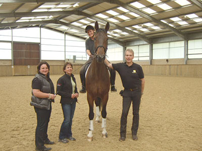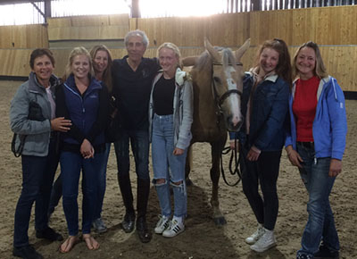 Training with Gerd Heuschmann at the Unicorn Trust. Emily Baker, Debbie, Anja Fragodt with her horse Elling and Gerd