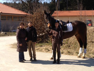 Not so busy in April. Ligero is feeling great and fully recovered from his virus. We attended a two day training clinic at the TTT with Herwig Radnetter from the Spanish Riding School of Vienna. Herwig saw Ligero a year ago and was pleased with his progress. He remembered how nervous Ligero was when he first saw him and it was great to be able to show a much more confident Ligero, secure in his outline, looking stronger in his body and more trainable. We had a super two days and were lucky with the weather, which enabled us to also enjoy some beautiful hacking after the lessons.